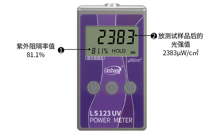 4.?LS123紫外功率計(jì):接收紫外線光,通過(guò)放入樣品前后的數(shù)據(jù),可以算出樣品的紫外線阻隔率。