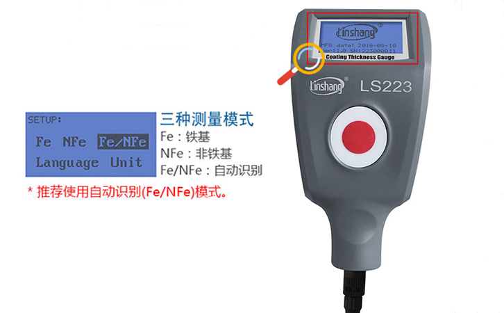 鍍層測厚儀LS223的Fe/NFe模式下,則是結(jié)合了這兩種原理,可以兩種不同基體下快速轉(zhuǎn)換測量模式。