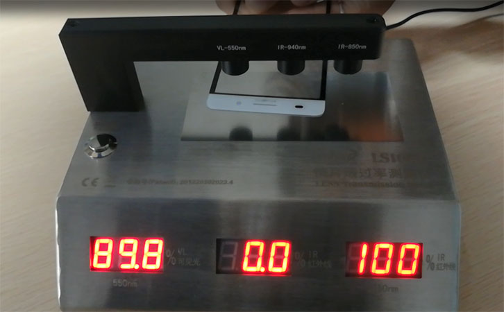 LS108D手機蓋板測試儀可以測量可見光550nm的透過率,紅外線940nm,850nm的透過率。