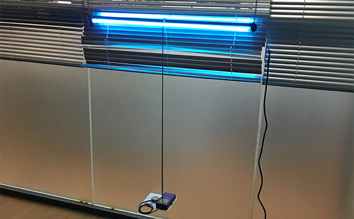 1.把LS126C紫外線強度計配備的標尺掛鉤掛在殺菌燈管中央,把儀器上去,離開房間,打開殺菌燈。